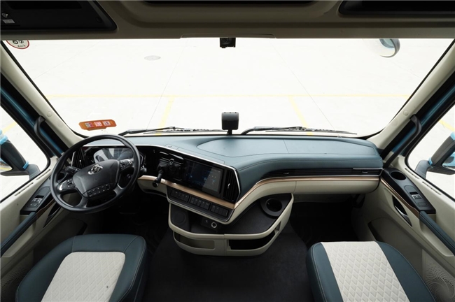 车辆外观采用东方龙魂设计美学,21道礼赞流光格栅,犀利组合大灯,优雅大气。驾驶室采用大空间设计,拥有同级别最大1.93米的站立空间,匹配“一键躺平式”多功能气囊减震座椅,一键切换至150°黄金仰角,可充分缓解驾驶疲劳,让驾驶室成为移动的司机之家。